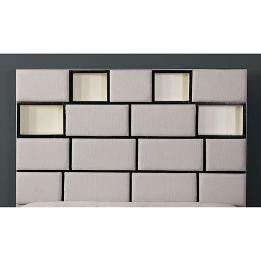 Gemma Beige/Black Cal.King Bed This is an absolutely dazzling bed. The sectional panels up fabric upholstering make for an unforgettable visual, an...