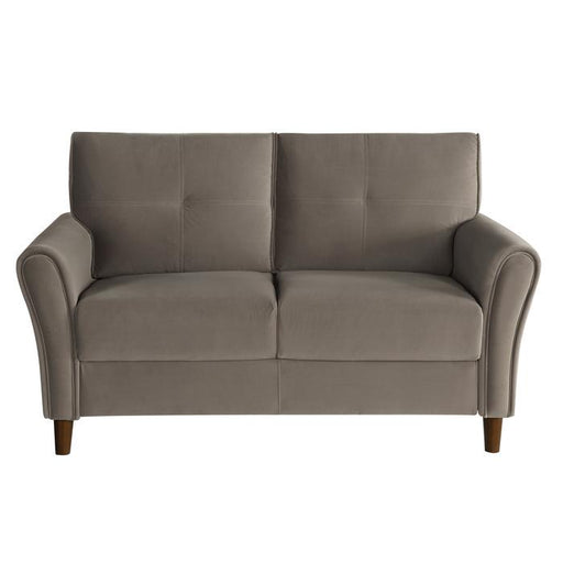 With a tailored look that is achieved with flared arms, clean lines, and a brown velvet cover, the love seat of the Dunleith Collection provides bo...