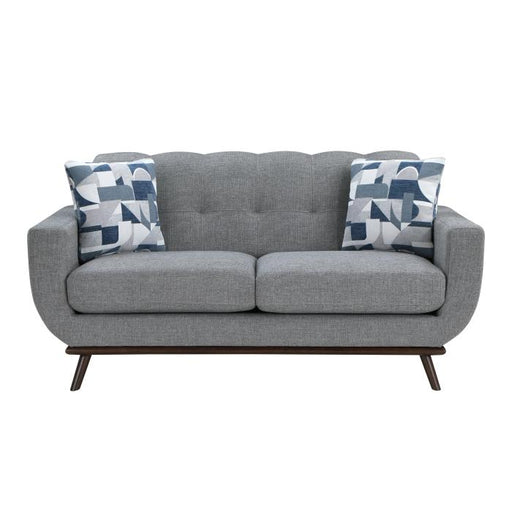 Mid-Century Modern inspired design comprises the timeless look of the Everton Collection. Gray chenille covers the modern framed love seat with geo...