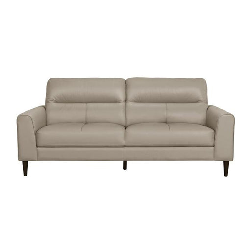 Modern comfort is paired with retro lines to create the design of the Lewes Collection. Covering the sofa is Latte-hued 100% top grain leather wher...