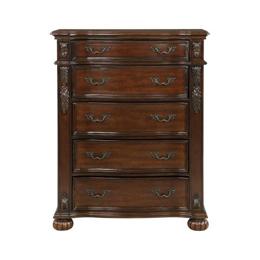 This bedroom set will fit in well in a Mediterranean-inspired space. This dresser features fluted panels and columns topped with foliage details re...