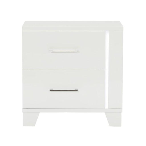 Kerren Collection by Homelegance White high gloss finish Crafted from manmade wood and wood Polished chrome tone bar pulls 2 drawers Dovetail d...