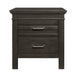 The transitional styling of the Blaire Farm Collection serves as the perfect complement to the rustic aesthetic that inspired the design. The okume veneer is enhanced by the charcoal gray finish that covers the nightstand. Fixed handle pull hardware fronts the drawers while horizontal accent on the top drawer lends visual contrast. 24 x 16 x 25H