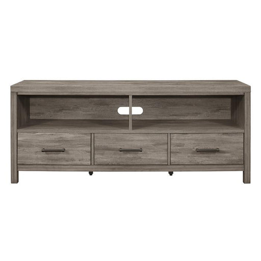 Following the trend of rusticated simplicity is the Bainbridge Collection. Melamine laminate perfectly mimics the look of weathered gray wood, lending to the rustic style. The transitional framing of the collection allows for placement in myriad casual dining room settings, creating the perfect canvas for your preferred decorative style. The fixed-top table and coordinating chairs - which feature gray fabric padded seats – seats six comfortably. Black metal bar hardware fronts the doors and drawers of the coordinating server, providing complementing contrast to the gray finish.