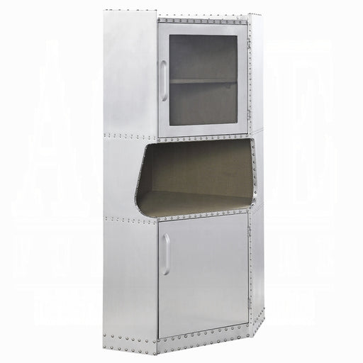The Brancaster home office collection offers modern look and industrial styling that will be the perfect addition for your workstation. The desk features patchwork of aluminum accented with drawer and shelves for extra storage. Matching the desk with top grain leather padded accent chairs for a luxurious look.
