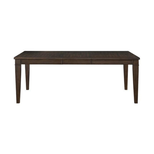 Makah Collection by Homelegance Dark Brown finish Made of Oak veneer and wood Separate extension leaf Table extends by pulling both ends and dropp...
