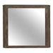 The transitional styling of the Jocelyn Collection is achieved by blending the natural rustic look of wood grain and clean lines to create mirror that will fit right in with your home’s aesthetic. The brown hue of the printed faux-wood grain frames the mirror, with clipped corners defining the profile. 43 x 3 x 38.5H