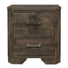 The transitional styling of the Jocelyn Collection is achieved by blending the natural rustic look of wood grain and clean lines to create a nightstand that will fit right in with your home’s aesthetic. The brown hue of the printed faux-wood grain is perfectly complemented by the subtle contrast of the nickel-finished metal fixed drawer pulls. Clipped corners define the profile of the nightstand’s frame. 24 x 16 x 25H