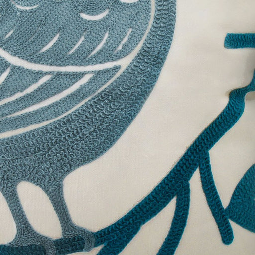 This accent pillow has a simple yet captivating design for any season: a bird perched on a branch in pale blue.