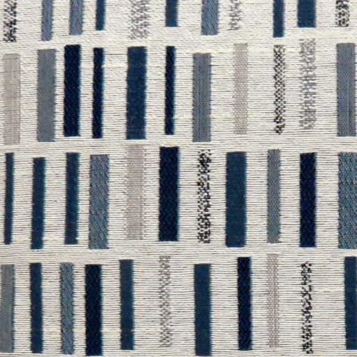Thin rectangles in shades of blue, black, and brown dominate the pattern on this contemporary throw pillow.