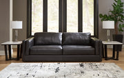 Keen on crisp, contemporary design? Adore the pleasure of leather? Look no further. This sofa satisfies on every level. Richly textured and decadently supple, the plush cushions are wrapped with expertly matched leather and faux leather upholstery in an on-trend onyx tone. Sleek double-padded arms and a low, clean-lined profile complete the spacious sofa's simply chic appeal.