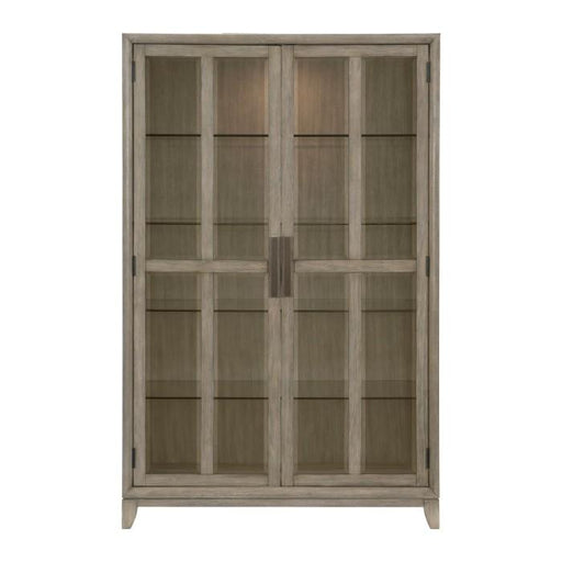 Mckewen Collection by Homelegance Gray finish Made of Oak veneer and wood 1 cabinet with 2 glass doors,4 glass adjustable shelves Auto sensor ligh...