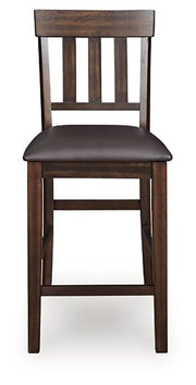 Modern sophistication, beautifully served. This bar stool raises the bar with a cool, rake back design with staggered rungs for added interest. Dark and rich, the monochromatic finish enhances its sleek profile. Faux leather seat upholstery offers easy-care appeal.