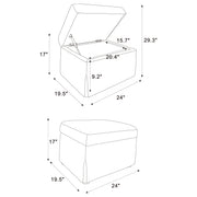 This versatile storage ottoman enriches your living space with stylish functionality. Upholstered in soft, neutral fabric, its hydraulic lift top reveals hidden storage perfect for stashing blankets, magazines, or personal essentials. Use as a footrest, extra seat, or accent piece. Designed to complement modern or traditional décor, it effortlessly enhances comfort and organization in any room. Key Features: • Chic storage ottoman offering discreet organization • Beige fabric upholstery for a soft, neutral touch • Hydraulic lift top ensures smooth, easy access • Hidden compartment ideal for blankets or magazines • Crafted with quality materials for lasting support • Perfect as a footrest, extra seating, or accent piece