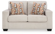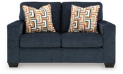 Looking to make a bold statement with color? Liven up your living room with this loveseat. Its trend-right navy blue upholstery adds a playful pop of color to your decor. Bold and eclectic accent pillows complete the look. Pairing posh style with everyday comfort, this piece is a welcome addition to contemporary spaces.