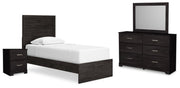 View full detailsWith its clean-lined look and modern attitude, this bedroom package is a fresh style awakening. A warm charcoal hue over replicated oak grain easil...