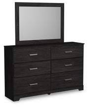 With its clean-lined look and modern attitude, this dresser and mirror is a fresh style awakening. A warm charcoal hue over replicated oak grain ea...