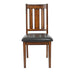 The burnished finish and classic profile of the Delmar Collection will be a perfect fit for your modest casual dining space. Splat back wood chairs with black faux leather seats flank the dining height table offering. Routed detailing provides a linear focal point on the table top.