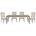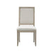 The sophisticated modern styling of the McKewen Collection brings refined design to the elegant space of your dining room. The oak veneer is finished in a light gray finish that is perfectly complemented by the neutral tone of the arm and side chair’s fabric.