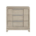 The sophisticated modern styling of the McKewen Collection brings refined design to the elegant space of your bedroom. The nighstand features ash veneer, which features a light gray finish that perfectly complements the horizontally mounted, pewter-finished, metal hardware that centers each of the unit’s drawers. 28 x 17.5 x 29H