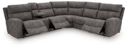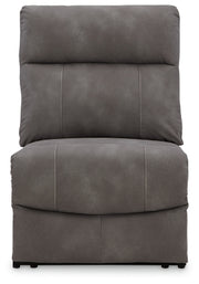 Stylish, adaptable and durable. Your living room is the central hub of your home—why settle for anything less? With this power reclining sectional, you can make everyday lounging effortless. A modular design gives you the flexibility to rearrange and refresh your space as you please. Clean up spills with ease thanks to a faux leather that’s as beautiful as it is functional. And when it comes to relaxation, keep your comfort a priority with seamless one-touch reclining and adjustable headrests.