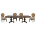 Blending the classic aesthetic of traditional design is the Russian Hill Collection. The nod to Old World styling comes in elements such as dental, rope and bead molding, shell motifs and faux marble accent, this dining collection goes above and beyond to create the desired look. An elegant double pedestal table serves the main course of this refined collection. Acanthus scroll design encompasses the table apron and complement the wood frame fabric chairs. The stately china stands as the focal point topped with a carved shell accent and elaborate acanthus scroll design. The server features faux marble top, glass and wood door fronts, wine storage as well as service drawers. Further lending to the design of the china and server are the fixed antique finished hardware and pilaster accenting in the style of Corinthian columns. The Russian Hill Collection is offered in a traditional warm cherry finish with gold tipping solidifying the interpretation on traditional décor.