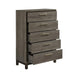 The contemporary styling of the Vestavia Collection provides a unique platform from which to redecorate your bedroom. Faux wood printed veneer provides subtle texture and a gray finish perfectly contrast to the dark brown base rails of the case pieces and back panels of the headboard and footboard. Clean lines lend to the angular modern look are enhanced by the horizontal brushed nickel hardware. Offered in both adult and youth beds, this collection provides great flexibility to your rooms at home.